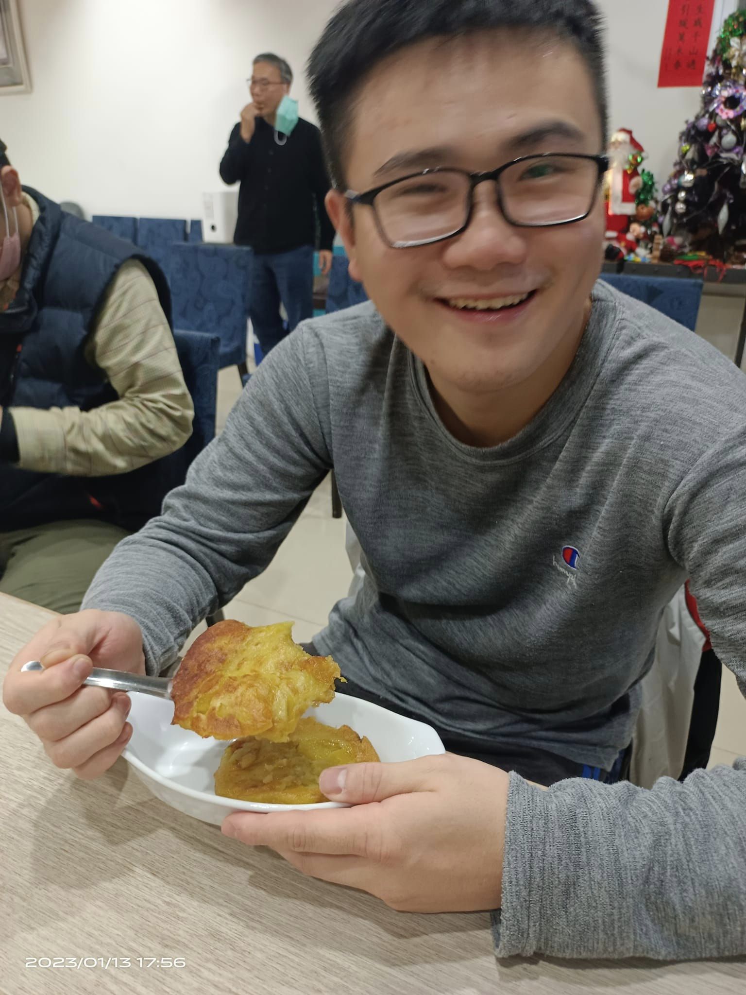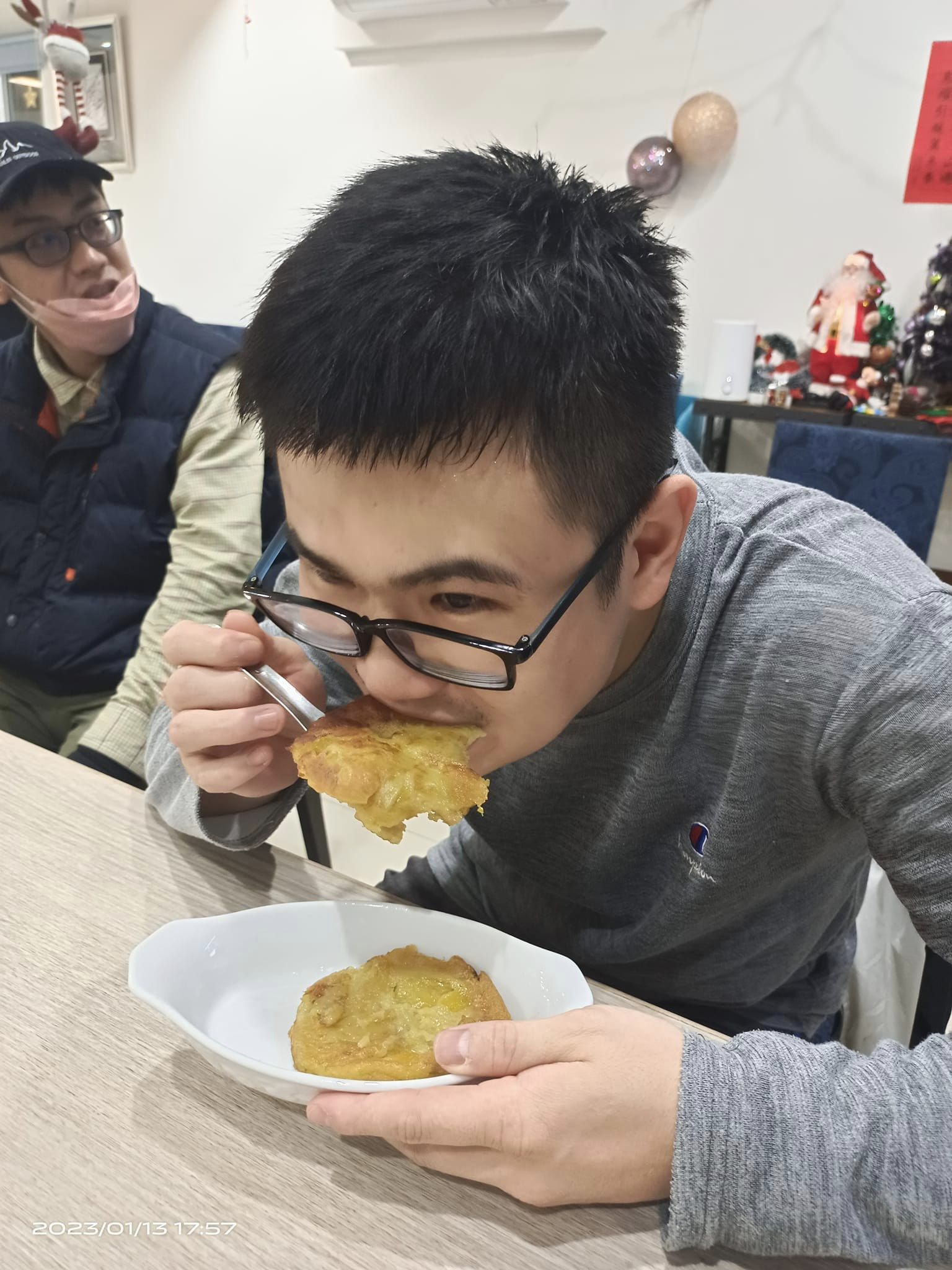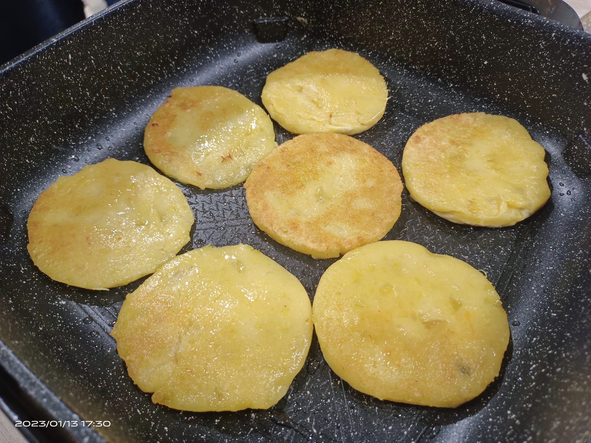週五傍晚,龍潭肯納家園食藝課,花花老師帶著孩子們做點心:先把地瓜蒸熟,大家合力搗碎成地瓜泥,加些糯米粉,和一和丶揉一揉,慢慢就變成麵糰;拍扁後,用模型壓成一個個圓形,放到鍋子煎一煎,金黃可口的地瓜煎餅上桌了!
