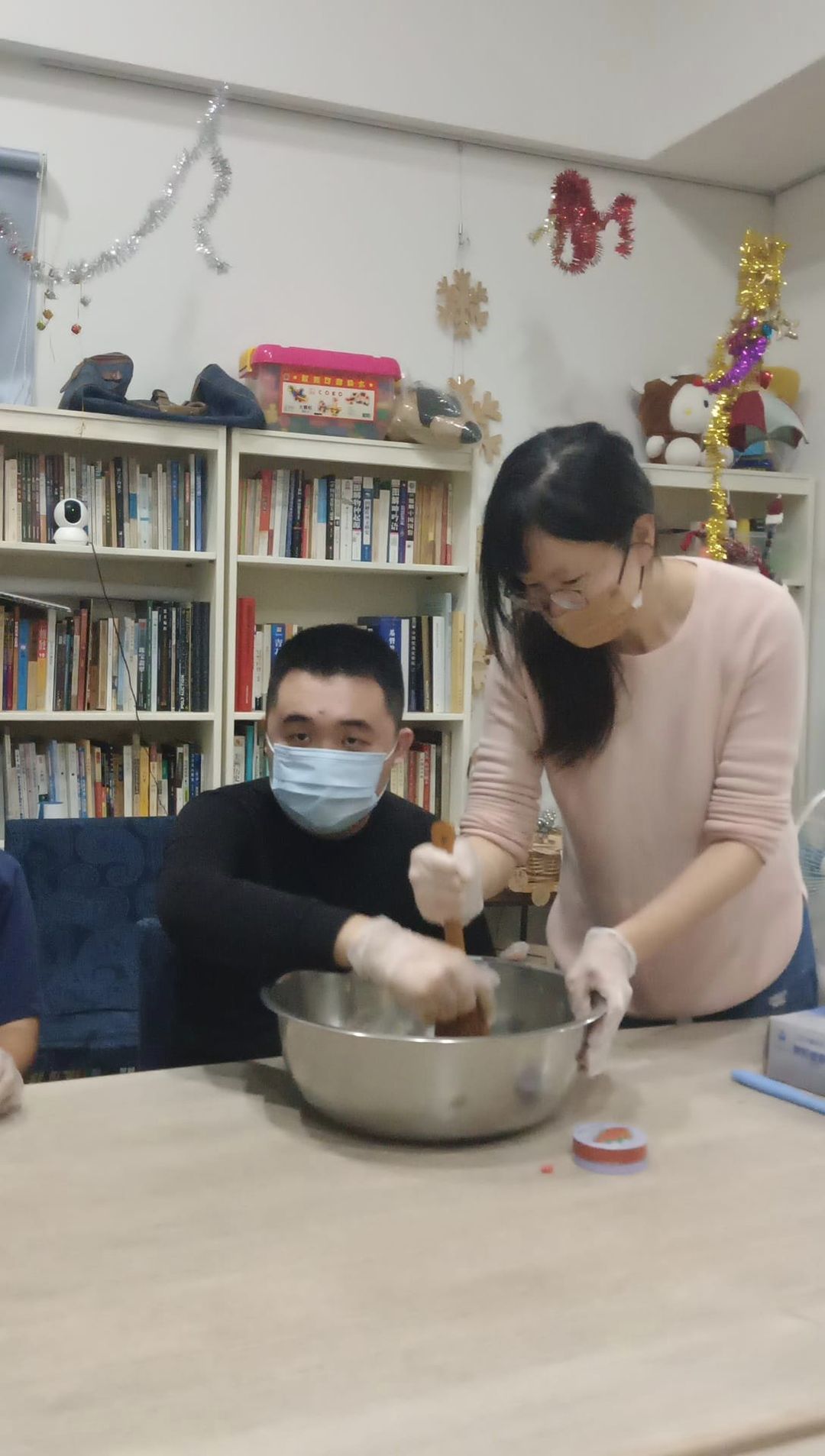 在家園交誼廳,十幾個大小朋友,一邊享用自己做的點心,一邊哼著Youtube上播放的歌曲,一邊聊聊天,享受著異姓大家庭最特別的幸福!