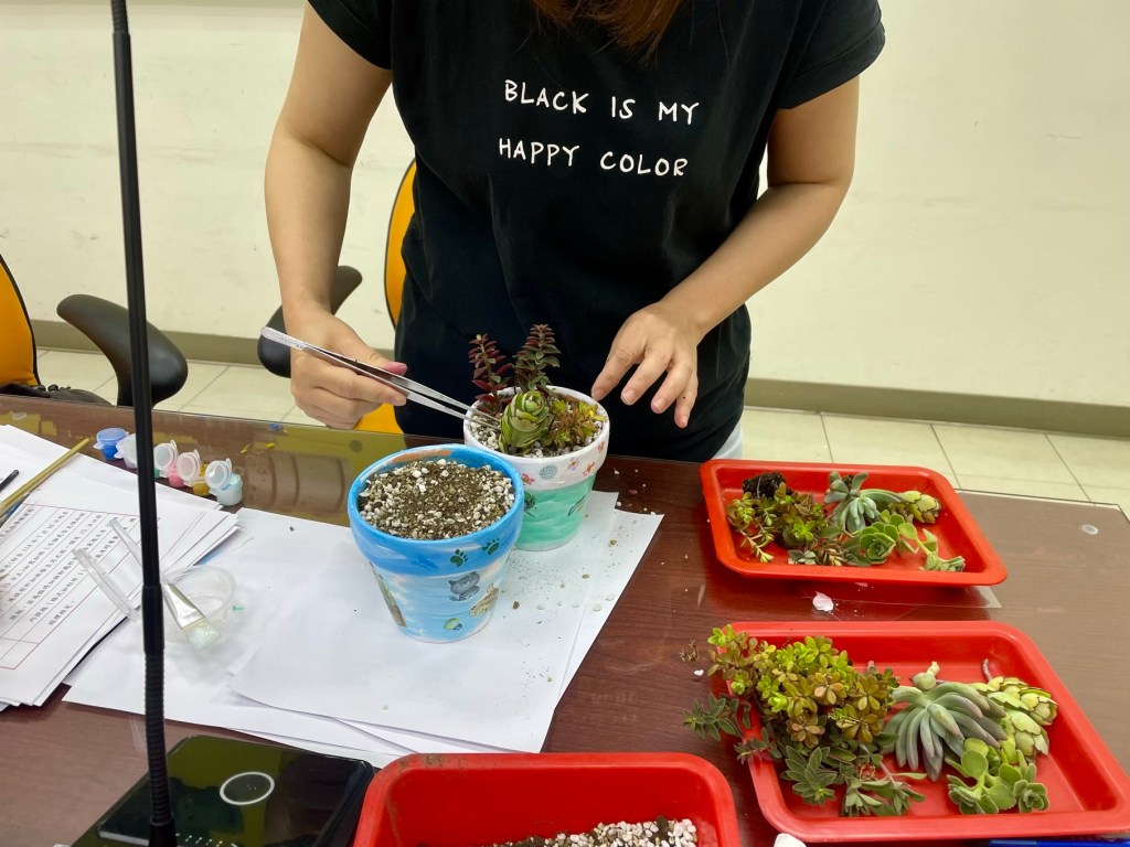「這堂課好療癒、好紓壓🌿」學員邊做著蝶古巴特多肉組合盆栽 ,一邊說著喜歡園藝上課氛圍❤️