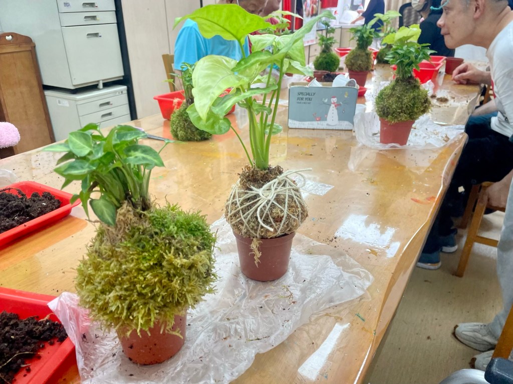 需要同時抓穩苔球與綑綁線繩,對身障的孩子們來說這個動作較困難,