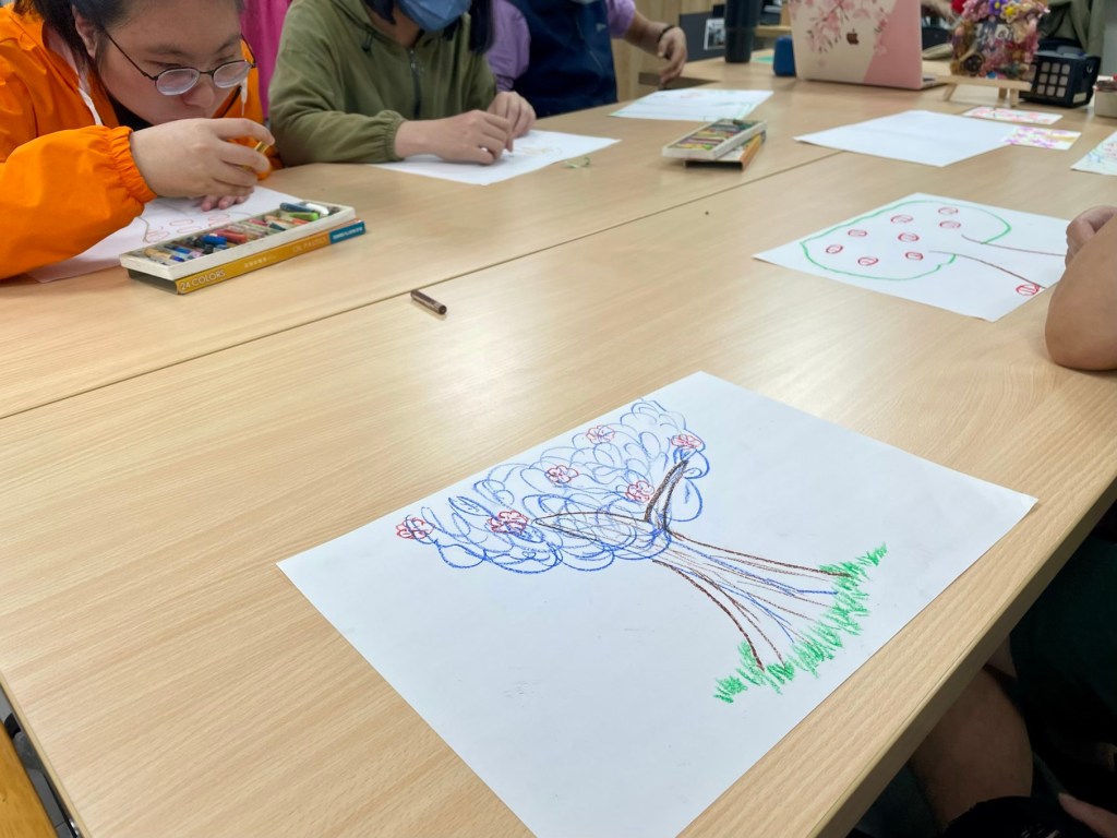 在暖心會所的園藝治療課上,學員們的想像力紛紛展開:「我是一顆蘋果樹🍎」「我是火龍果樹🐉」「我是開很多花的樹🌸…」