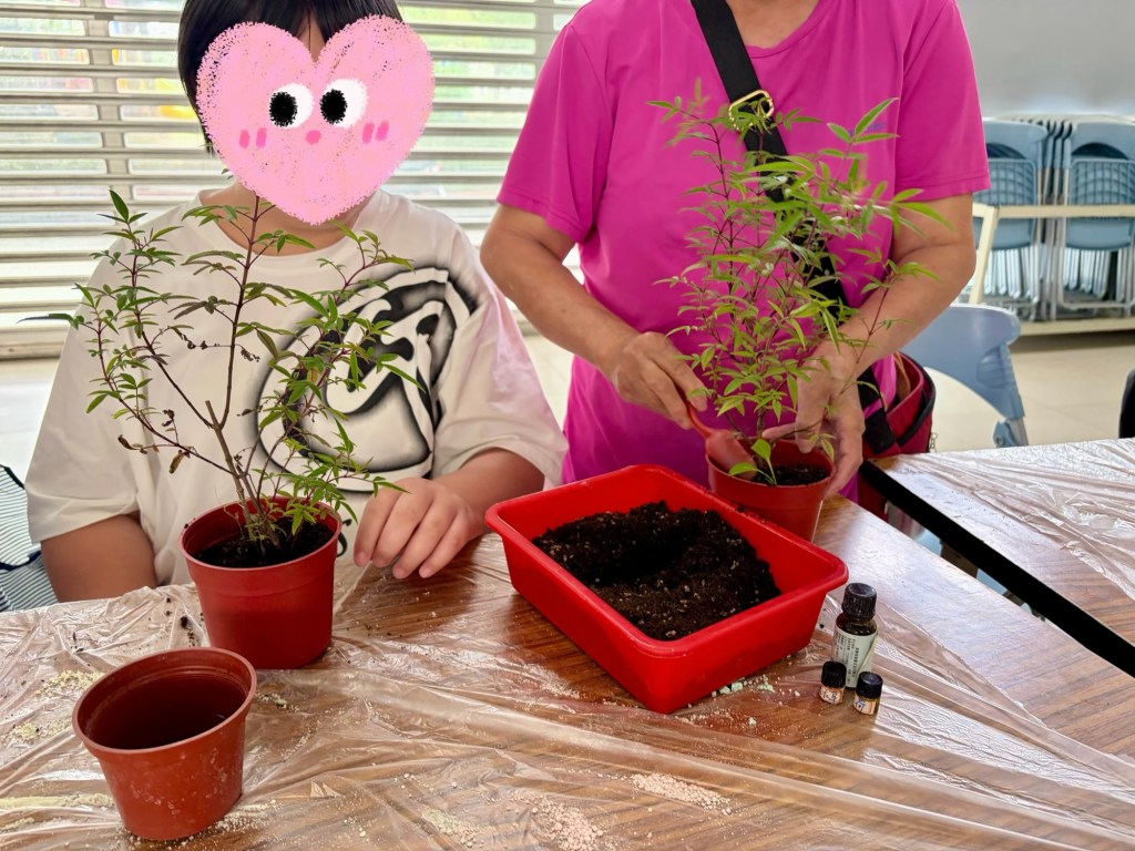 我拿出從家裡帶來的植物——